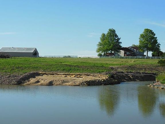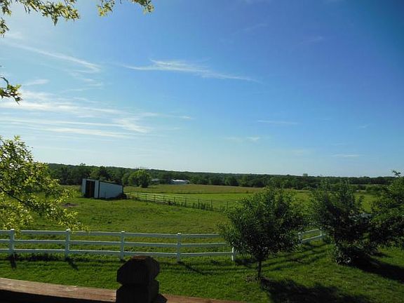 Amazing 5.5 acres in Johnson Co: River rock lined private lake with sand beach, island & bridge, boat ramp, 40 X 60 barn with possible 6 stalls, pasture with lean to, an outbuilding and a carport used as a dog kennel. Updated house has hardwoods, granite counters, 2 fireplaces, 2 decks and extra ginormous garages that are 27' deep. De Soto schools. AB May home warranty provided by seller.