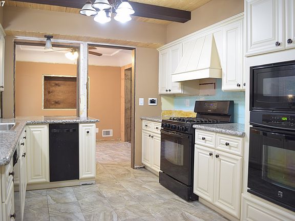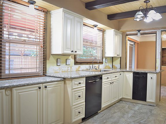 Lots of Remodeling done already! New windows, cabinets & granite slab kitchen counters, doors, hardwoods, garage doors/openers, plumbing, wiring, A/C, furnace. 2 fireplaces. Outdoor living w/one yr. old swim spa, huge deck, pergola, BBQ cooking area, new fences. Oversized attached 2 car garage AND detached 681sq ft 2nd garage for at least 2 more cars and its own driveway & room for RV! All kitchen appliances & garage frig stay.