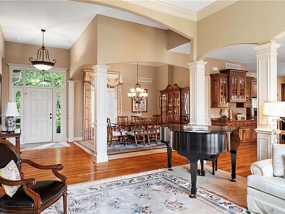 This house is pristine!!! A former model for the subdivision, this easy to live in reverse 1.5 story is move in ready and has been so well maintained: an open floorplan gives you plenty of space and natural light on the first level. Two living and dining areas offer flexibility in everyday living; the main level also includes a laundry room w/built in desk, attached 3 car garage, spacious kitchen with lots of cabinet space and everyone's favorite feature: the screened in porch! Relax in the large primary suite; the three other bedrooms can be used for guests, office space, hobbies. Step down into the lower level family room, perfect for family and friends gathering around the wet bar and entertainment center. Outside, the fenced yard features a patio for the grill and the subdivision pool is just down the street. Blue Valley school district too! Don't wait--this could be the one for you!