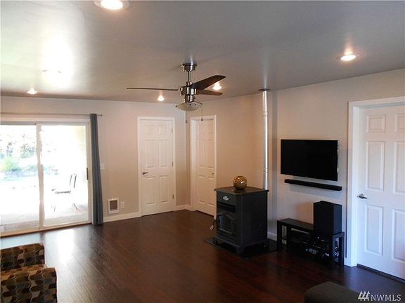 Completely remodeled in 2016 home on 1.38 acres. 2 bedroom with walk in closet in master bedroom, 2 full bath and good size bonus room that could be used as a bedroom. Open concept floor plan, home heated with a pellet stove/electric. Property is flat and has lots of potential for garage shop and/or other structure. Very private, fully fenced backyard with garden and room for all your farm. Enjoy rainy days outside on covered back deck. Remodel includes new roof, siding, windows, flooring, kitchen cabinets, SS appliances, new bathrooms, new paint inside and out and more. Carport on the side attached to the house. Conveniently located close to I5, 512, shopping, and other amenities. Franklin Pierce School District. Please give minimum 2 hour notice to view the home.
