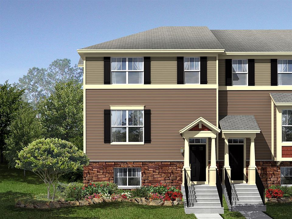 A spacious end-unit townhome, the Fremont offers up to 2,288 square feet with three bedrooms, three-and-a-half baths, and a two-car garage. This three-story townhome has an open-concept floor plan with a light-filled family room, dining room with bay window, and a stylish kitchen overlooking the living room. The kitchen features a beautiful center island, breakfast bar, Aristokraft® cabinetry, Whirlpool® appliances, and walks out to the deck. The upper level is complete with three bedrooms and two bathrooms. The spacious owner's suite includes a sitting area, walk-in closet and a private bath with a double vanity. Other interior features include 9' first floor ceilings, vinyl insulated windows with Low-E Glass, Moen® faucets, Shaw® carpeting, Armstrong® flooring and more.