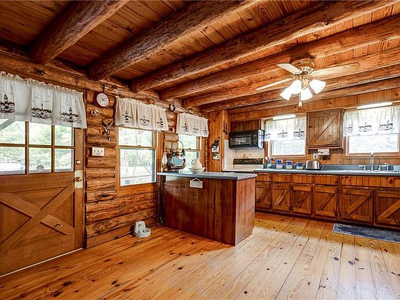 Cozy log cabin on nearly 12 peaceful acres.This property has beautiful hardwoods and a small pond with the potential to enlarge. There is also an open field for livestock and a possible additional homesite. This home is off the road offering privacy and peaceful surroundings, yet convenience in the Cosby HIgh School district. A large outdoor work shed is perfect for projects and storage. A large equipment shed allows for covered storage of all additional farm equipment or vehicles. New septic and logs were just treated. New hot water heater. This home was built by the owner and includes nice closets and built-in shelving and a great laundry room. You have to see it to appreciate it. Three bedrooms and 2 full baths. Please no Escalation Clauses! Fireplace, flue convey as-is, although no known issues.