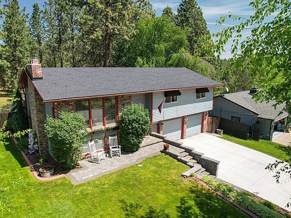 You’ll love this tastefully updated 4 bed/3 bath home on a quiet cul-de-sac in the Ponderosa neighborhood. Kitchen rehab in 2018 includes wood floors, white cabinets, quartz counters, & stainless appliances. Every part of this meticulous home has fresh interior paint! Updates in 2022 include: new roof, 2 Cozy Heat gas fireplaces, new lighting throughout, board & batten accent wall in primary suite, new sink & fixtures in guest bath, & new hardware in kitchen and baths. Slider off Primary Suite leads to a large, private deck and hot tub. 3 beds/2 baths on the main floor and 4th bedroom, laundry, and 3rd bath in basement. Attached garage offers a great workspace in addition to storage. Walkout basement to brick patio, large yard w/sprinkler system, & 6’ cedar fence with gate to 10 treed acres of Spokane Valley Park property to walk your dog or just stroll among the pines. Gas furnace, central A/C, & all appliances remain including laundry set. Additional insulation added and ductwork cleaned in summer of 2022.