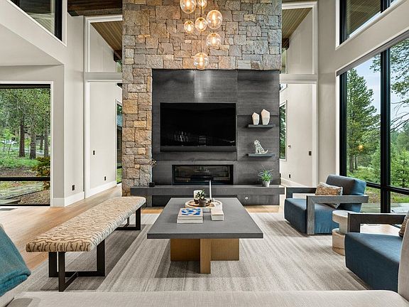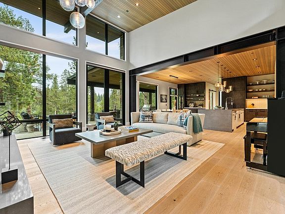 Designed by renowned Tahoe architect Clare Walton and built by Crestwood Construction, this stunning contemporary build represents a degree of sophistication unrivaled by any other home in Gray’s Crossing. Utter calm is the defining attribute of the home, demonstrated in a keen composite of soft tones, exquisite site lines, gracious spaces, luxury bathroom appointment, and an array of glass windows. The sweeping main-level floorplan accommodates to no end, wowing with a great room that features a giant stone partition—separating the space into two comfortable living areas—plus floor-to-ceiling windows which create an instant connection to nature. The space continues to open up into the dining area and kitchen where a collection of sleek built-in appliances and a massive walk-in pantry make for an entertainer’s dream setup. From there, a gathering could be taken outside for covered al fresco dining and after-dinner drinks around the built-in fire pit, all overlooking the 7th fairway at Gray’s Crossing. Also located on the main level is a cavernous 3-car garage which boasts a home gym, work area, three EV hookups and even space enough to accommodate a multi-vehicle car lift. With several work-from-home spaces, a dazzling primary suite you need to see to believe, and a versatile multi-use room to be dedicated to your wellness practice of choice, this superlative golf course home will lavish you, leaving nothing to be desired.