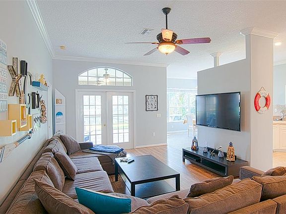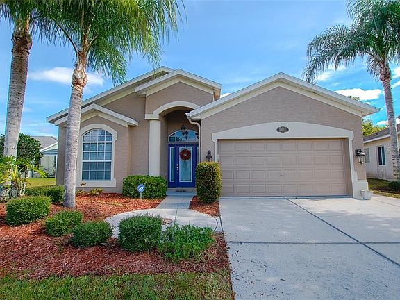 Gorgeous, bright and fresh, custom built home on a pretty preserve with a large pond in the rear. The gated Golf Course Community of River Ridge Country Club is always popular for its well kept grounds and proximity to highly rated schools, shops, restaurants and beautiful Starkey Wilderness Park where you can hike or cycle the bike trail. The home has been well maintained and recently painted throughout the interior with neutral grays, and new wood laminate flooring throughout. Spacious main living area includes Great Room, Dining area, fully equipped Kitchen, inside Laundry Room, and three split plan bedrooms. The Master suite is large and has bay windows looking out over the rear of the property, and a large Master Bathroom with luxurious garden tub, separate shower stall, dual sink vanity and a walk in closet. Enjoy dining outside in the 20'x20' covered and screened lanai. Additional outside patio for BBQ's and sunbathing, with peaceful views across the preserve. Your HOA fees include the Club House (with olympic sized pool, fitness center, restaurant and putting green), lawn care & irrigation, landscaping, garbage pick up and gated security. Furniture negotiable. Definitely worth a look!!