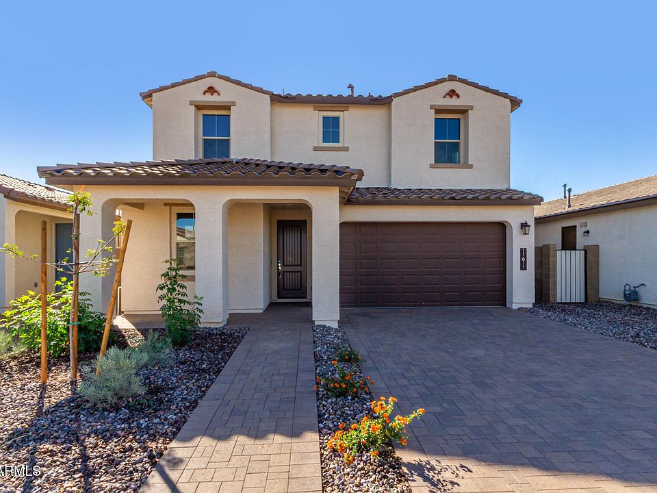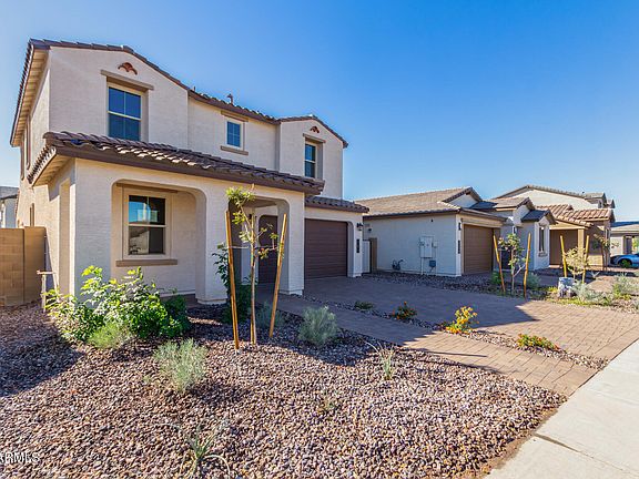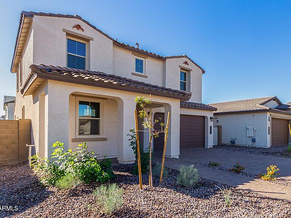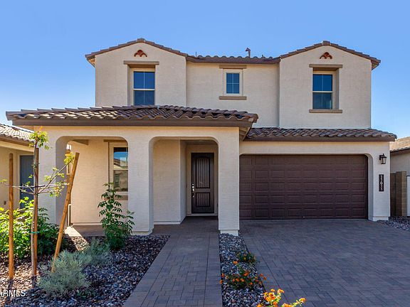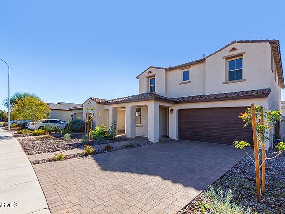 This spacious 2,648 sq. ft. home offers 5 bedrooms, 3 bathrooms, and a 2-car garage. The open floor plan showcases stylish light fixtures and ceiling fans. The gourmet kitchen features abundant cabinetry in Urban-style Repose Gray, Quartz countertops, stainless steel appliances, a mosaic tile backsplash, a prep island with a breakfast bar, and granite counters. The primary ensuite includes dual sinks and a walk-in closet. The generously sized backyard includes a covered patio. Community amenities feature a biking/walking path, pool, and children's playground. Upgraded wood-look tile flooring extends throughout, with carpeted bedrooms. All appliances are included!