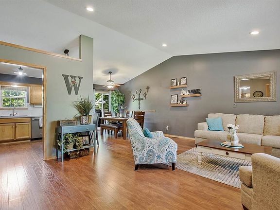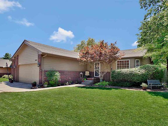 Welcome home with lush landscaping and many upgrades in this well maintained home in the Goddard School District. Open floor plan with large rooms. Main Floor includes Living Room, Kitchen, Dining Area, 2 Bedrooms, 2 Bathrooms and Main Floor Laundry. Basement has Family Room, 2 Bedrooms, 1 Bathroom and Storage. Kitchen, living room, laundry room and hallway have new beautiful Wood laminate floors & main floor bathrooms have tile floors. All 3 bathrooms have ceiling mounted heaters. Kitchen has brand new appliances, sink, and faucet. Three Car Garage is over-sized and heated with gas heater that stays - insulated also - walls, ceilings and garage doors plus 220 electric. Professionally landscaped yard with many mature trees and beautiful shrubs and plants. The backyard of this home is an oasis anyone would be proud to entertain their friends and family in. Large 20x10 Wood deck, concrete patio and flagstone pathway. Storage shed has a 2nd story playhouse that sits on a concrete pad that the kids love to play in. Sprinkler system on an irrigation well. All new exterior paint and guttering with some new siding. Roof is only 7 years old. AC Compressor and thermostat less than 2 years old. This home is immaculate, move in ready and won't last long! Contract will be contingent on the seller finding and placing a contract on the home of their choosing.