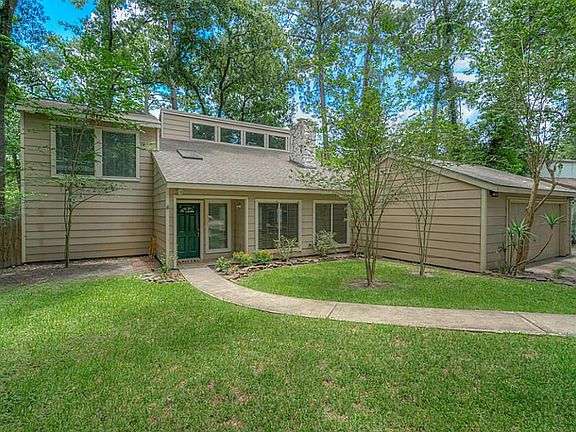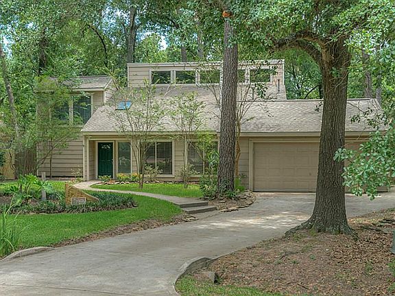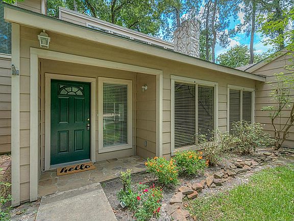Beautifully updated home in Grogans Mill Village (close to I-45 and Market Street) on private greenbelt lot! This fabulous home is light and bright with soaring ceilings and lots of windows! Family room has wood floors and stone fireplace; Kitchen has breakfast bar, light painted cabinets, stainless appliances (incl double ovens); Dining room has French doors; Master has French doors & updated bathroom w/walk-in shower; Amazing backyard with covered back porch and flagstone fire pit. Gorgeous!