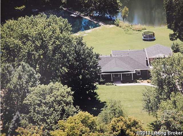 Very seldom offered..This is a remarkable walkout ranch and acreage (4.99 acres). Remodeled from top to bottom in 2003. This professionally decorated home and renovation was featured in Builder/Architect Magazine in Nov 2003. Minutes from Blankenbaker, Gene Snyder, J-town and next to Saratoga Woods. Yet privacy is yours. Just driving to the home and as you turn onto the driveway you will immediately appreciate this home and grounds. Big front porch to allow one to sit and view the large treed front yard. Step inside to the large foyer. To your right is the formal living room complete with a large bricked fireplace and bookcases on each side. Large opening to the ''jaw dropping'' open Dining Room Area, kitchen, breakfast area. Gleaming hardwood floors. Cabinetry galore, Eating bar/Hearth Room, cozy breakfast area with a fantastic view of the water and acreage, woods. Breakfast bar as well. Door to deck. Hardwood flooring in the hallway, spacious hall bathroom. Comfortable Master Bedroom with hardwood flooring, french doors that open to the deck and again the ''view''. Master Bathroom is spacious and offers a double bowl vanity, walk in closet and marble surround jacuzzi tub. Second bedroom offers neutral carpet. In the lower level you will find an open floor plan that is ideal for anything. One large area offers another woodburning fireplace this opens to another area that is an extension of the family room but also offers a kitchenette. In this area one can access the outside on both sides of the home. One to the patio and deck and on the other to the detached garage side. There is another large bedroom with windows that offer a beautiful view, large closet. Another room that is used as an exercise room. A large full bathroom and a door that leads to the patio and deck. Large deck that will allow for entertaining. This offers a panoramic view of the grounds. Picture early morning coffee relaxation or late evenings watching the sun set. There is a 2 1/2 car detached garage, an out building for a workshop, store your gardening tools etc. Now the ''grounds''. A perfect blend of open space, a spring fed lake and pond (stocked) and trees and trees. Fishing, swimming, small crafts in the water, hiking, exploring, building a tree house(s), camping out and whatever else your imagination allows you. Nature with animals you would expect to see such as deer, mallards, birds. Ideal for family outings, social gatherings..the list goes on. Yet you are literally minutes away from a Kroger anchored center. A little history: This acreage was part of the original Tyler Settlement in the late 1700's. Plus in the 1950's the Silver Springs Swim Club was located on this property. The large pond/lake was once the pool for the club. This property is just gorgeous year round. Acreage is two lots combined, survey attached. Note ''lake'' location.