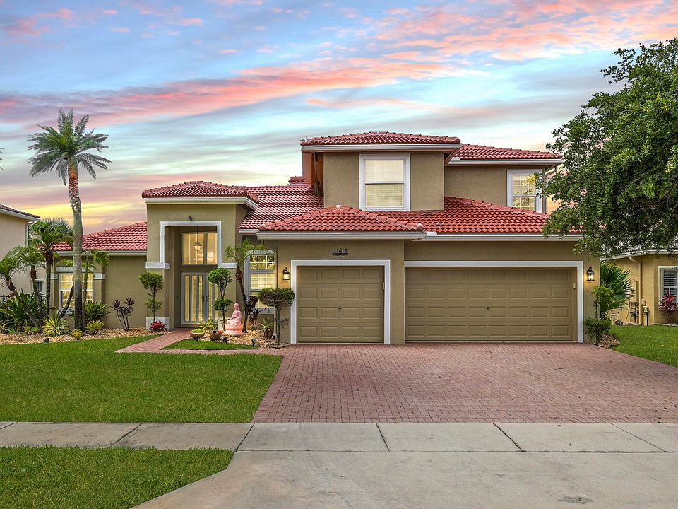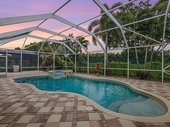 Spacious 5-bedroom, 3-bath, two-story home with a NEW ROOF along with impact windows & doors throughout. Located near top-rated schools, and walking distance to Polo Park Middle School, this home offers a first-floor primary suite and a guest room with a full bath, ideal for an office or in-law suite. The open kitchen boasts Samsung appliances and granite countertops, and wine fridge, flowing into the family room and outdoor space. Relax in the saltwater pool and spa, or enjoy the extended paver patio! For convenience there is also a cabana bath. Plus, enjoy a whole-home water softener, new sprinkler pump, and even a mango tree! Community features include a clubhouse, pickleball, tennis, basketball, pool, and manned gate.