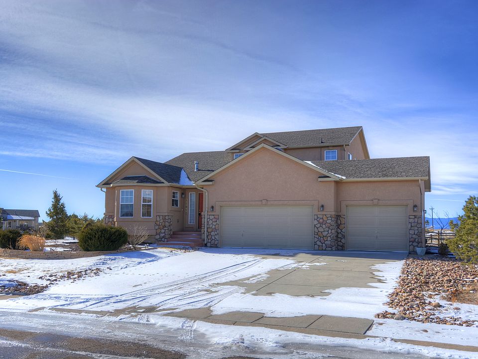 Amazing 3 bedroom, 3 bathroom home with over 3,500 total square feet located on a cul-de-sac in Woodmen Hills! Main level master with private 5pc bath. This home features wood floors throughout the main level, vaulted ceilings, a large kitchen with enormous counter space, opening to the living room with a gas fireplace! Second floor has 2 additional bedrooms open to a vaulted loft. Unfinished basement ready for your future needs. This home is located in the Antler Creek Golf Course Community with restaurants and shopping minutes away! HOA includes access to the recreation center with a full gym, indoor/outdoor swimming pool, and basketball court.
