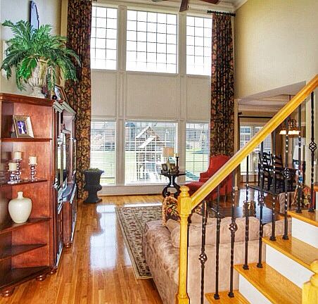 A MUST SEE! This beautiful custom home will suit all your family and entertainment needs. As you enter the large foyer you will notice the abundance of crown molding and open floor plan that features a 2 story living room and hard wood floors. LARGE eat in kitchen with stainless steel appliances, 2 pantries & granite counter tops. The kitchen opens to a cozy hearth room w/ 15 ft. stone gas fireplace for those chilly nights. Master bedroom has vaulted ceiling with his and her walk in closets. Additional features include, surround sound throughout home and on covered deck, 2 laundry rooms, custom finished basement w/ bar, office/bedroom with full bath, & oversized storage closets. The garage is a work mans dream. High ceilings & plenty of custom cabinets. Don't miss this!