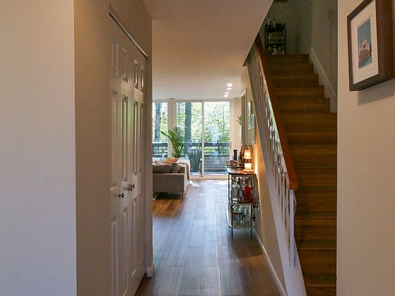 The lower level houses updated HVAC with an integrated humidifier, energy-efficient tankless water heater, in-unit washer and dryer, plus additional storage space.