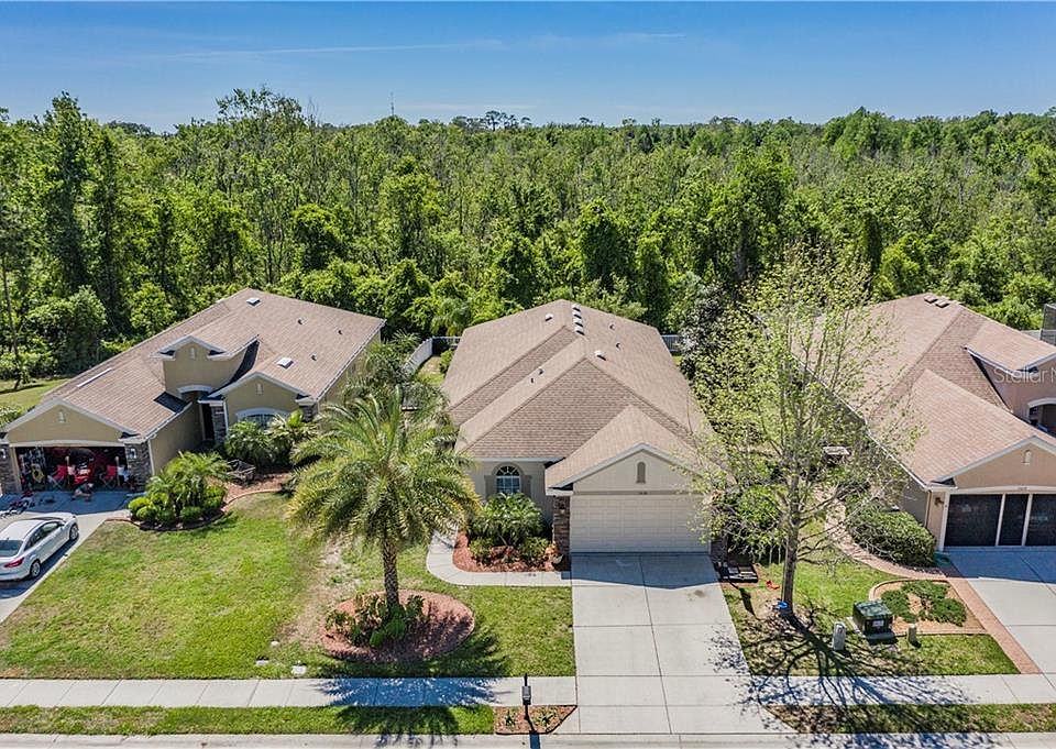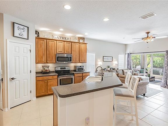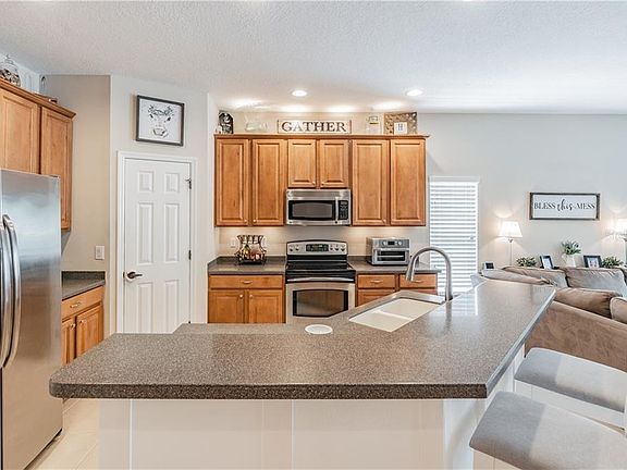 MINT! MINT! MINT! BEAUTIFUL 4 BEDROOM, 2 BATHROOM HOME ON CONSERVATION LOT IN HIGHLY SOUGHT WATERS EDGE! This Open Concept, Split floor plan combines the family room and kitchen providing the perfect space for entertaining or spending quality time with family! This kitchen boasts 42" wood cabinets, Corian counter tops, Stainless Steel Appliances, Closet pantry, and breakfast bar! The large Master Bedroom/Bathroom features a Dual vanity, garden tub, shower stall, and walk-in closet! This home sits in the perfect location on a cul-de-sac street, and backing up to conservation! The comfy screened-In back porch overlooks the private fenced-in backyard! This home also features a bonus flex area currently used as an office, but would also make a perfect play room, reading room, or hobby room! All of this located in the gated community of highly sought Waters Edge! Water's Edge amenities include a clubhouse, community pool, fitness center, playground, parks, basketball courts, and a community boat ramp and fishing dock! Schedule your showing today, this one will not last long! (CDD fee is included in tax figure)
