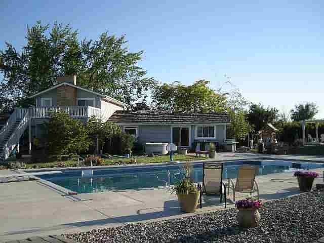 Beautiful home on 7.68 acres. Main level living rm, family rm, dining, kitchen and den. Island kitchen with Ash wood cabinets, built-in oven & full height backsplash. Den has wood fireplace. Upstairs is the master suite with private bath and deck. 2 additional bedrooms and full bath. Downstairs is the sauna, 20'x14' rec room w/fireplace, craft rm, sewing room & storage. There is also a door leading out to the pool . 50'x50' insulated shop with office, workout rm and half bath. Extensive patio &