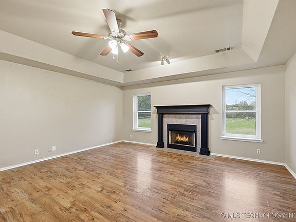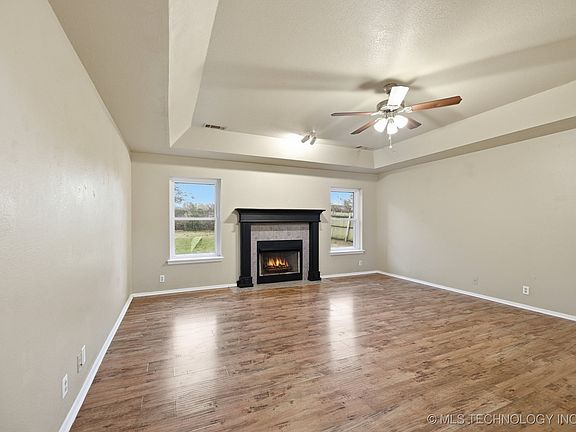 Coming Soon. No offers or showings until November 19. Spacious living room with a cozy fireplace welcomes you home! Enjoy the convenience of his and her closets and beautifully tiled showers in both bathrooms, including a walk-in shower in the hall bath. The washer, dryer, and refrigerator stay, making move-in easy. Home features newer windows and furnace for added efficiency. With a few finishing touches, you can make this home truly your own. Conveniently located near Highways 169 and 75, and just minutes from Owasso and Collinsville schools, restaurants, and shopping.