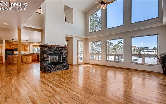 Stunning custom built home designed to incorporate the natural landscape & beauty of the Black Forest. Vaulted ceilings in the living room will impress while a wall of windows captures the breath taking surroundings and mountain views. Main level open to amazing deck where you can relax and watch the beautiful sunset over Pikes Peak, you might even catch a glimpse of wildlife drinking from the stocked pond! Hardwood floors through out the main level and a beautiful double sided stacked stone fireplace. You won't run out of storage in this kitchen with a large island integrated gas stove top, pull out cabinet shelves and walk-in pantry. 4 car oversized pull through garage. Home is equipped with Hi-efficiency uv protected tinted windows, 2 furnaces, 2 hot water heaters, whole house water filter, hot water circulator, water softener and humidifier. Laundry on main and upper levels.4th bedroom is designed as a craft room but is multifunctional. Unfinished garden level basement has 9ft ceilings, plumbed, wired and includes drywall and plans to finish. Basement also has a safe room with concrete walls and a fire door. 50year shingle roof, a 1 year home warranty and whole house security system with motion detection. Lots of thought and planning went into the completion of this fabulous home.