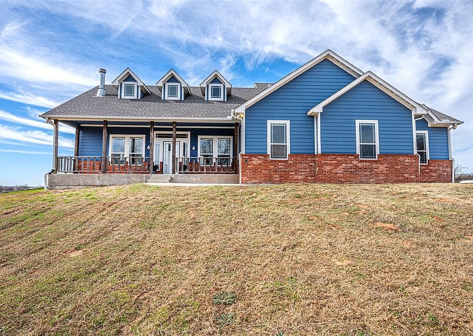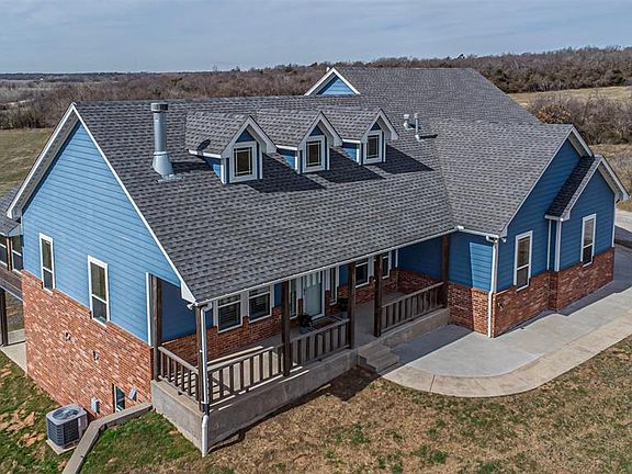 You have found your Dream Home on over 13 acres. This one owner custom built home provides stunning views of the Oklahoma Sunset. Right from the start your blown away with the views and open floor plan as you step inside. Luxury Vinyl Plank Floors extend all the way through the home. The Gas/Wood Fireplace Frames Family Room. Energy Efficient Vinyl Windows with Plantation Shutters afford tons of natural light. Your new Kitchen has it all. Beautiful Quartz Countertops, Double Convection Ovens and Microwave. 5 Burner Gas Cooktop with Professional Venting to Exterior. Tons of Countertop Space, Storage and Pantry make it complete. Huge Kitchen Dining area with Bar Seating and Full Dining Room with Built in Hutch provide options. The Entry Level features a massive Laundry Room with Island, Mud Bench and Storage. Four Full Bedrooms w/ ceiling fans and Two Full Baths support the Bedrooms. Going downstairs you will find the Owners Suite. Large Master bedroom. Quartz Countertops. Double Vanities. Walk-In Closet, Private Water Closet. Shower and Soaker Tub. Mini Bedroom off Master(Nursery). Mother In Law Suite. Bedroom, Living and Full Kitchen. Huge Open Trex Deck, Covered Front Porch & Covered Patio. Unfinished Basement has House Mechanicals. Safe Room and a Massive amount of storage. The Shop Building is 40x40(2018) concrete floor & insulated. Whole House Generator for peace of mind. Schedule your Private Showing Today.
