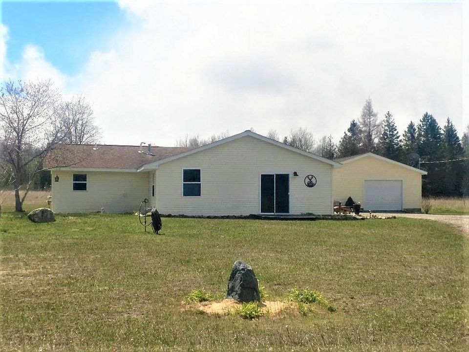 Situated on 77 nicely wooded acres and located on a paved you, will find this very nicely remodeled 1500 square foot 2 bedroom ranch home with a drive-thru 2.5 car garage, utility shed and partially fenced backyard. Inside and included are nearly new appliances (Whirlpool stacked washer-dryer, refrigerator-dishwasher-stove-microwave), a new Englander Pellet Stove w/one ton of pellets, along with laminate, carpet, and tile floors. Outside are the pond, many apple trees, trails throughout the acreage, 4 tree stands & 1 tower blind, and two newer patios for grilling or just enjoying the sounds of nature. Plus thousands of acres of state land and 10,000+ acre Black Lake are just a skip and a jump away for additional recreational opportunities.