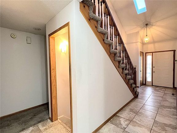 From the moment you walk in the front door you will notice beautiful tile floors, soaring vaulted ceiling, a great room with fireplace featuring gas logs opens into dining area with space for large table and Kitchen featuring light and bright white cabinets and solid surface countertops, trash compactor and more. You'll also love the fenced backyard with a nearly new 900 square foot deck spanning the back of the home with plenty of room to entertain. Mature trees offer plenty of shade for the backyard as well. Also, on the main level you'll find a primary suite with tub, shower, and walk in closet. A second spacious hall bath and large bedroom finish out the main floor. The second floor has a primary suite all on its own. Featuring full bath with linen closet and large walk-in closet and a whole house fan. The basement features 1000 sq foot of finished space great for a game room 2nd living area hobby space and more. There is also a very large unfinished area that could be used for storage space, future expansion. New paint and gutters along with front double window casement in 2023. HVAC 7 years young, pest control up to date, newer Hot water heater. Nothing to do here but move in and enjoy this prime Overland Park/Blue Valley property. HOA welcomes Owners Occupants only please.