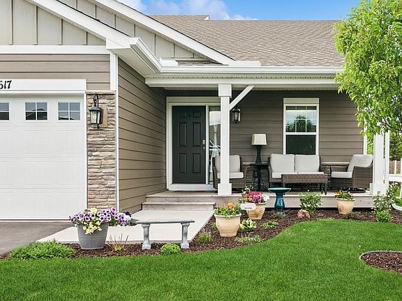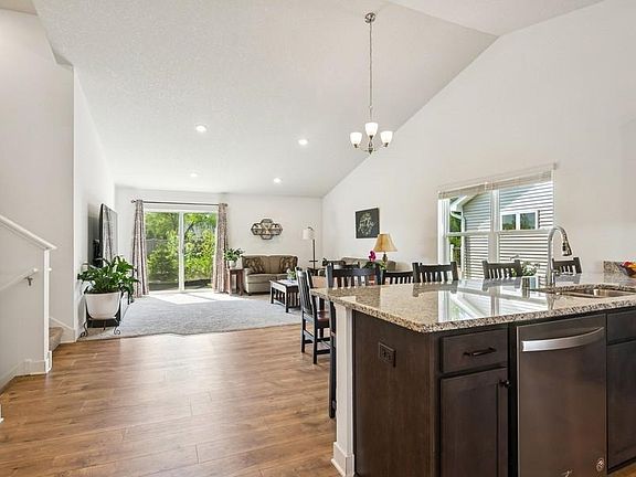 Welcome to this beautifully maintained and thoughtfully designed home in Dayton! From the moment you arrive, you'll appreciate the inviting front porch—perfect for your morning coffee—and the bright, open layout inside. The main level features vaulted ceilings, an abundance of natural light, and a functional kitchen with stainless steel appliances, generous counter space, and pull-out shelving in nearly every cabinet. It's an ideal space for meal prep or entertaining. Upstairs, you'll find three spacious bedrooms, including a private primary suite with a walk-in closet and ¾ bath. The lower level offers additional living space with a cozy family room that walks out to the backyard patio, a fourth bedroom, and a ¾ bathroom—plus impressive storage space. Enjoy the outdoors in the spacious yard—perfect for relaxing or hosting a BBQ on the patio. Explore nearby Elm Creek Park and local green spaces, including a park with pickleball courts. Smart home features include an ADT security system, cordless blinds, and compatibility with Alexa devices—allowing you to control lighting, the front door, thermostat, and garage door remotely from your phone or with voice commands. The garage also features epoxy floors with a transferable lifetime warranty for added peace of mind. Located in a quiet area with convenient access to nature trails, parks, and community events.