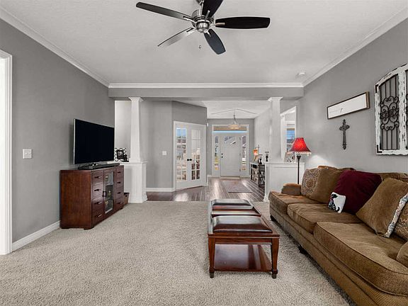 **NEW PRICE IMPROVEMENT** A must see! Move-in ready & former Lancia model home w all the upgrades! 2,841sqft lofted & split bedroom ranch with 9â ceilings. The main floor includes 3 spacious bedrooms, the master has a coffered & treyed ceiling along w crown molding, large walk-in-closet w organizers. The master bath has a ceramic floor and freedom shower with extra backsplash trim and double vanity with square undermount sinks. A den/office w french doors, living room, dining room, kitchen, and a 2nd full bath. A separate laundry room has shelf, utility sink and 4 closet tamer lockers w cubbies & bench off the 3 car garage. Laminate wood flooring runs through the beautiful treyed ceiling entryway, halls, and kitchen. Pillars, crown molding and a ceramic & wood trimmed gas fireplace accent the carpeted great room which has plenty of windows~with window treatments~to look out to the professionally landscaped fenced-in yard w irrigation system and pond view! The kitchen has granite counters, ceramic backsplash, extra under cabinet LED lights, stainless appliances, and a breakfast bar. A 14x11 screened porch extends off the dining area then to an outdoor paved patio featuring a brand new retractable awning, turning outdoor space into an extra entertaining area. The large upper loft area includes a full bath and could be used as a huge master suite, additional living room, office, gym, or game area.