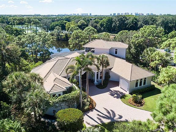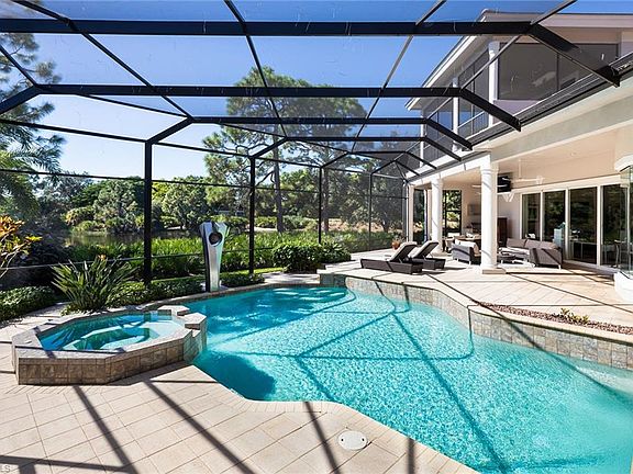 Sophisticated, stylish and sunny retreat describes this beautifully renovated residence on a private cul-de-sac lot with serene southern exposure lakefront setting. This sprawling residence offering over 8,500 square feet in total area is an entertainer's delight with spectacular foyer entrance with 17-foot ceilings, huge windows, climate-controlled 700-bottle wine cooler with beautiful glass door and great room with big views and impact pocket sliding doors leading to the 2,700-square-foot lanai with ample covered and uncovered entertaining area. The sleek cook’s kitchen offers Thermador appliances, six-burner gas stove, double oven, center island, bar area and huge walk-in pantry. Many improvements include four stunning renovated baths, exquisite light fixtures, new roof and screened enclosure in 2018, two new water heaters in 2022, marble floors in living area and guest suite, wood floors in owner’s suite and study, generator, gas fireplace, built-in safe, Sonos sound system and speakers throughout living area, Ring security and summer kitchen with Artisan grill and sink. The large owner’s suite offers beautiful views, two walk-in closets, large bath with private garden setting with inside and outside showers. Huge private guest suite upstairs with large screened and open balcony overlooking the lake. Long driveway leads to the fabulous oversize 927-square-foot garage with built-in cabinets, third bay for golf cart and car lift for the auto collector. Immediate golf membership available with purchase, negotiable furniture package and pristine condition make this home move-in ready. Collier’s Reserve's natural beauty of 450 acres was recognized as the world’s first Audubon Signature Sanctuary community and offers world-class club amenities, championship golf, active tennis, pickleball and bocce, newer fitness center, excellent food with friendly staff, and overall superb location in Naples, less than two miles to Vanderbilt Beach.