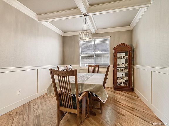 - Description: Hardwood Floor, Coffer Ceiling, Wainscotting, Elegant Chandelier