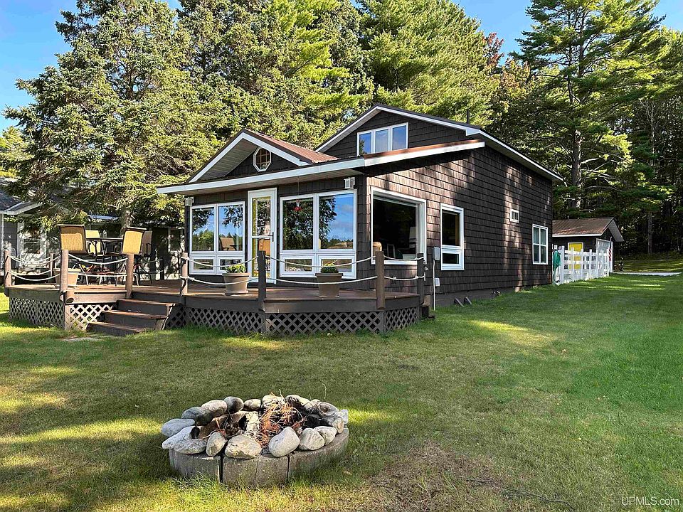 Thunder Lake itself is a gem, boasting 340 acres of pristine water, with a sandy bottom perfect for swimming and water sports. Along with the beautiful lake, sunset views here are truly breathtaking, offering you a peaceful and serene atmosphere to relax and unwind. Located on a county-maintained year round road between Manistique and Munising, this turn-key home is nestled right in the heart of the Hiawatha National Forest, offering you unlimited opportunities for fishing, hunting, 4-wheeling, and snowmobiling just outside your door. This beautifully upgraded home features an insulated 2-car garage, which is perfect for keeping toys, and more toys. The recent renovations include low-maintenance vinyl shake and metal roofing, giving the property a fresh and modern look. Additionally, you will enjoy top-of-the-line appliances, newer flooring, and windows, all professionally installed to ensure your utmost comfort. The sale of this home includes all furnishings, appliances, Generac generator, a 14 ft fishing boat with motor, paddle boat, a new roll-in dock, and all furnishings down to the silverware. You'll have everything you need to fully embrace the lakefront lifestyle from day one.