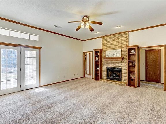 This beautiful home in Oakwood East Addition is ready for a new owner! Enjoy an open floor plan with beautiful built-ins in the living area that surround your gas log fireplace. Living area opens up to the patio and backyard that is ready for outdoor cooking and summer entertaining. The kitchen has a stainless steel gas top stove with a convection oven and large pantry conveniently located in the laundry room off of the kitchen. The master bedroom also opens up to the patio and the master bath features a whirlpool tub with a great separate walk-in shower. The neighborhood park, with a pond and walking trails is within walking distance. Come and make this house your home!