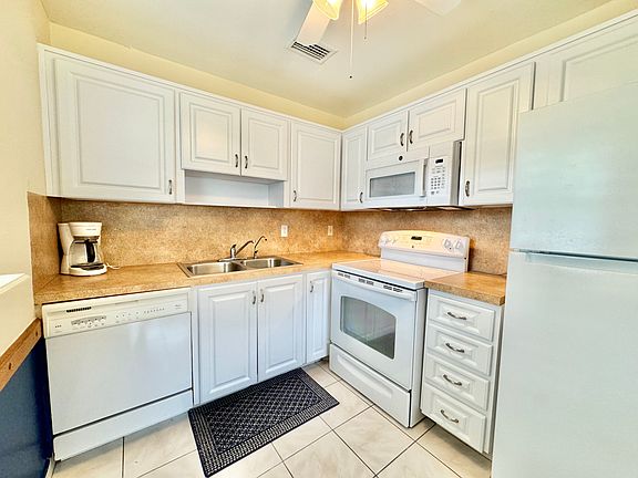 AVAILABLE! 55+ GOLF COURSE community. AGE RESTRICTED. Live every day like you are on vacation. Golf course on site. This beautiful, furnished condo has tiled main area and carpeted bedrooms, dining for 4, cute kitchen (microwave, dishwasher, range/oven and refrigerator), large master bedroom with king size bed, en suite bathroom with walk in shower and large walk in closet, guest bedroom with large closet, day bed and desk, Florida room with futon. Indoor laundry. TVs in living room and Florida room. Ceiling fans in living room, kitchen, bedrooms and Florida room. CARPORT #619 included. Association states ONE car per unit. If you have two cars please inquire. NO PETS per owner. Rent includes: WIFI, cable and trash. So much to do in this super active community. The clubhouse is amazing! Billiards room, card room, computer room, craft room, library, entertainment auditorium with activities, gym, pool, clubhouse, shuffleboard, Bocci, tennis and more! BRAND NEW CARPET IN BEDROOMS, NEW BEADBOARD IN FLORIDA ROOM. Rent includes: Cable, wifi, trash Age restricted. One car. FIrst/last/security to move in. Looking for strong candidate.
