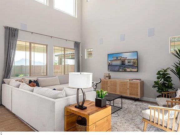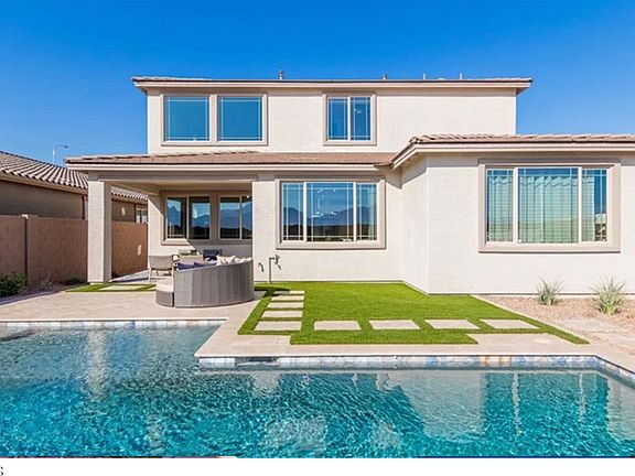 This is a BEAUTIFUL FORMER MODEL home! This GORGEOUS home is OVERFLOWING with TONS of DESIGNER upgrades including: tile/carpet, lights/fixtures + all window coverings! GOURMET kitchen w/gas range, quartz countertops, island w/sink, subway backsplash, 42'' staggered cabinets + stainless appliance suite! GRAND 2 story great room w/loft! Office/flex room with built-in custom cabinets! PRIVATE owner's suite with walk in shower and HUGE walk-in closet! STUNNING backyard OASIS w/built-in swimming pool, pavers, faux grass and covered porch! Long range MOUNTAIN VIEWS! Great shopping/ restaurants nearby! WELCOME HOME!