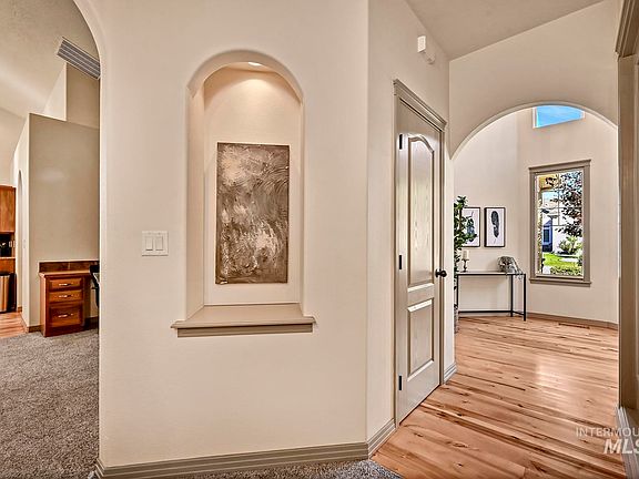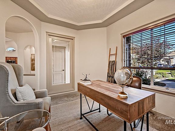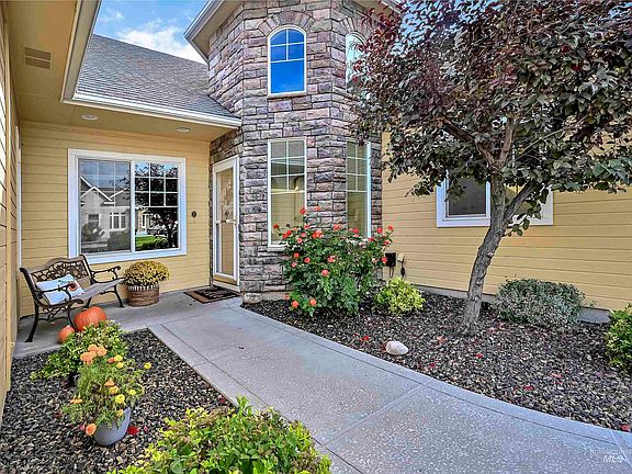 Welcome to this beautiful, custom-built home nestled in a serene neighborhood. You'll be delighted by the fabulous floor plan that offers the majority of your living space on the main level with the added bonus of an upstairs retreat, perfect for a fourth bedroom or office with extra bathroom. The main level features a spacious living area, a well-appointed kitchen and inviting dining spaces. The main level also houses the primary bedroom suite which includes a soaker tub with separate shower, dual vanities and an oversized walk in closet. From the primary bedroom, you will also enjoy access to the backyard which is a haven with mature landscaping creating an Idaho oasis. This well-loved home offers not only a comfortable and functional living space but also a sense of community with a nearby school, green spaces and close proximity to shopping and freeway access. The previous owners created such a well-maintained and welcoming atmosphere, you can truly feel the heart of this home.