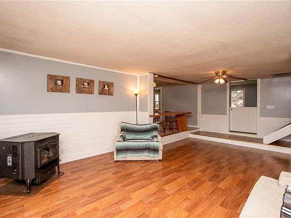 Beautiful country setting with almost 1500 sq ft of finish, 4.5 m/l acres, and a large 3 car detached garage with concrete floor. The main floor consists of a large kitchen with eating area, dining room/rec room, updated bathroom and a sunken living room with double doors to the deck. Finishing off this level is a master suite with private bath and an additional rec room/office. Along with the wonderful space on the main level, there are 3 more bedrooms located upstairs. The kicker is the over-sized 3 car garage...big enough for all your toys plus a work shop. Some of the newer updates to this great home are newer furnace, AC, septic, siding and several windows. Located 1.5 miles off a paved road with amazing country views. Great for a horse or hobby farmer!