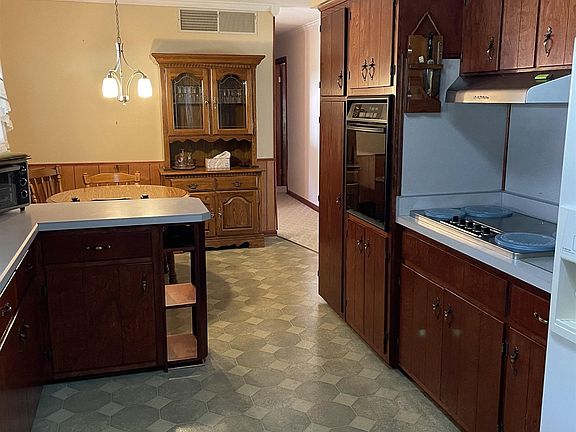 Great corner location for this 3 bedroom/ 2 bath home. Covered front porch. Remodeled in 2018 improvements include: both bathrooms remodeled. New HVAC, Hot water heater, drywall, crown molding and carpet. Full unfinished basement with lots of storage. Kitchen comes fully equipped with all appliances and divider bar. Formal dining room could serve as 4th bedroom.