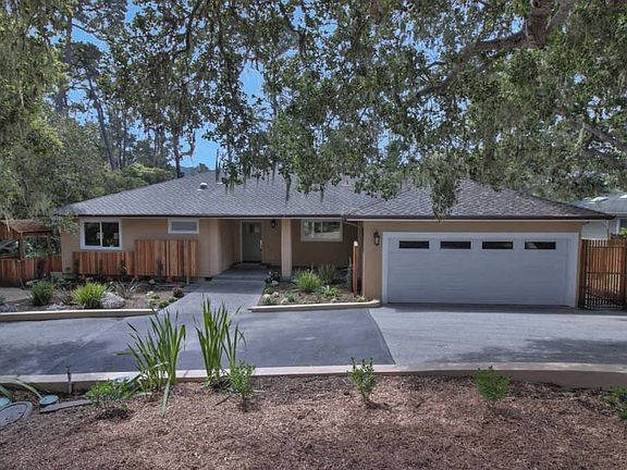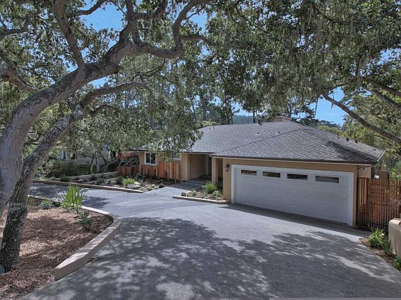 This is your opportunity to purchase this remodeled Pebble Beach home with fantastic views of the Pebble Beach forest and MPCC golf course. Although unassuming from the curb, this property packs a punch with 2468 square feet of private living space plus views of the green belt and MPCC's 5th hole behind. Enjoy single level living with everything you need on the main level, including the master suite, a second bedroom and bath, large open living room and dining room with a peninsula fireplace, a large new kitchen, laundry room and a two car garage. In addition there is a large slate tile deck with room for an outdoor BBQ. Guests will love the lower level which offers a large family room with a fireplace, two bedrooms, each with their own bath, a wine cellar and a large patio with access to the back yard.