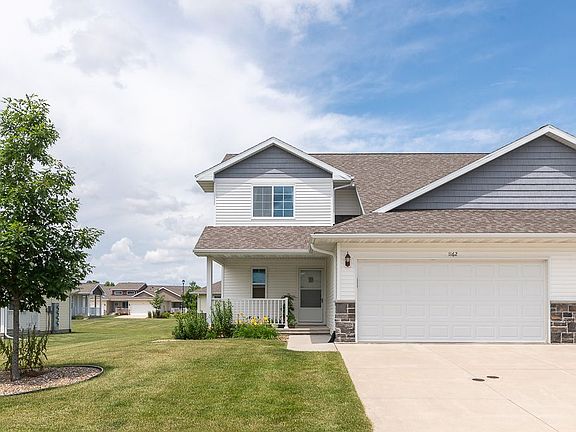 This end unit (like new) with large south facing covered porch is ideal for a lovely summer day. It has 4 bedrooms and 2.5 bathrooms. The master suite is sure to please with a walk-in closet, and a bathroom with a walk-in shower, and in-bathroom linen closet. The unit has a finished lower level with media room, full bedroom, and additional storage. Notable digital enhancements include Nest Thermostat, Digital Lock on garage entry, and decorative lights in Kitchen. Why buy a new house at new construction prices - when you get way more for your money here. Award-winning Linn Mar schools. Easy commute to Collins Aerospace. Possession is immediate.