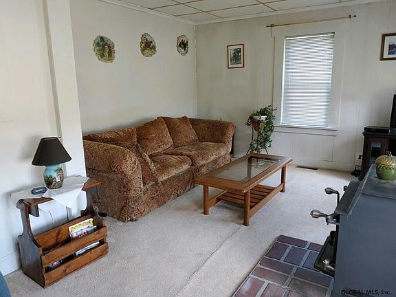 Located just minutes from the center of Delmar, the home is set back from road and situated on 1.61 private acres. Updates include: replacement windows and doors, Eco water system, newer septic, Energy Star qualified attic insulation, gutters, and newer refrigerator. There is a 2 car garage, small pond, shed and plenty of room for gardens. Enjoy the peaceful setting while watching nature abound. Bethlehem Schools. House and garage to be sold in "as is" condition.