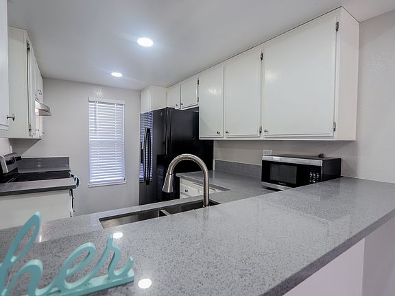 Stunning Remodeled Townhome in Prime Neighborhood Step into modern elegance with this completely remodeled two-bedroom, two-bath townhome/condo designed for comfort and style. The beautifully upgraded kitchen boasts sleek quartz countertops, soft-close cabinets, recessed lighting, and brand-new stainless steel appliances, including an electric stove. A refrigerator is also included for your convenience. Enjoy the practicality of an attached garage with extra storage space, plus an additional carport for your parking needs. Stay comfortable year-round with centralized AC and heating. Nestled in a serene and well-maintained community, this home offers access to exclusive Homeowner Association amenities, including a sparkling pool, relaxing spa, and lush landscaping. You'll appreciate the fresh exterior updates with new paint and fencing and ample guest parking. Located just minutes from premier shopping and dining and with easy freeway access, this home combines peaceful living with unmatched convenience. Don't miss out this property won't stay on the market long! The tenant is responsible for all utility expenses. Smoking is prohibited inside. The property includes an attached one-car garage with additional storage space. Pets are negotiable, subject to approval and an additional deposit. The lease term is 12 months.