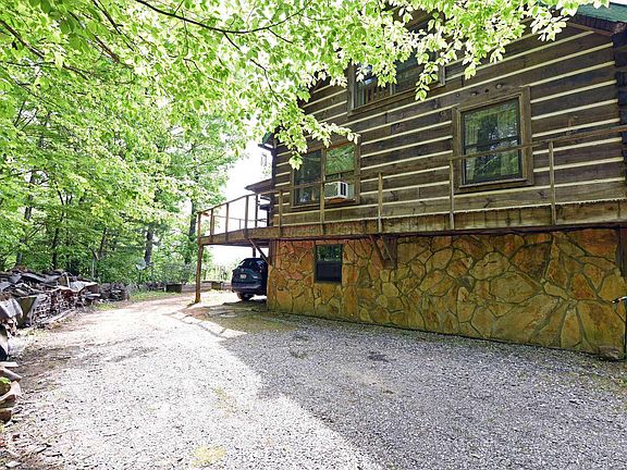 STUNNING MOUNTAIN VIEWS from this true log cabin nestled on 6.96 +/- unrestricted acres! Natural light spills into the home, and really highlights the beautiful wood interior. This home offers an open floor plan that includes a loft with a half bath, and full bath on main level. Spacious kitchen, fully finished basement with a bonus room, living area, laundry room that doubles as a workshop, and full bathroom-enjoy the jetted tub! Relax on your wraparound deck or inside your screened in porch, and enjoy the long range views! Property boasts a lovely garden space, a spring fed pond with koi, and a barn with a loft! Ready for the serenity of the mountains? Then YOUR CABIN AWAITS!