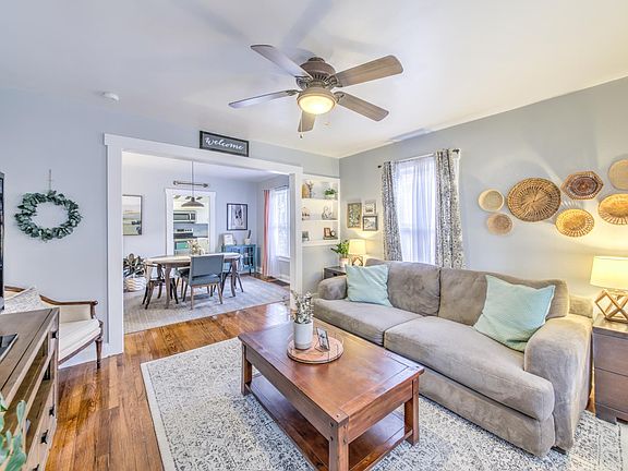 Located in the heart of St. Charles, this gorgeous bungalow is loaded with charm & is ready to be your next home. Home features a low-maintenance brick exterior that was newly painted & a lovely covered front porch that will be perfect for your morning coffee. A spacious tree covered fenced-in back yard will be perfect for entertaining guest and includes a detached garage. You are greeted by a warm and friendly family room that features gleaming wood floors (through out), ceiling fan & neutral colored walls. Through the relaxing dining room you will enjoy a beautiful updated kitchen with tile backsplash, newer stainless steel appliances, & newer ceramic tile flooring. Two nice sized bedrooms & a gorgeous updated bathroom with stand up shower, soaking tub, bonus shelving & unique hexagon porcelain tile flooring. Basement offers additional hangout space & provides plenty of extra storage! Home is very close to the parks and restaurants of Main Street St. Charles. Call to view today!