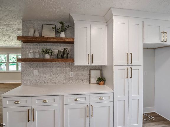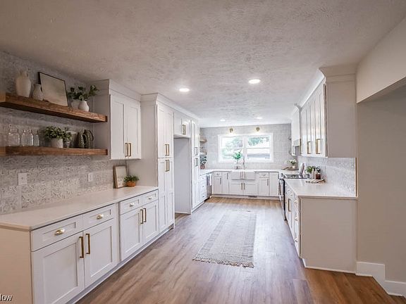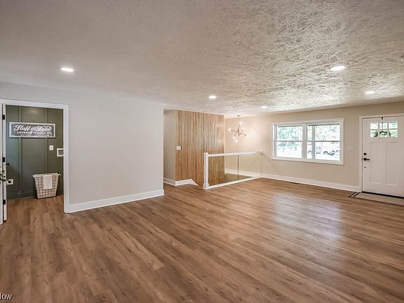 This is it, the home you've been waiting for! Stunningly remodeled, this 4 bedroom ranch boasts a new steel roof, siding, windows, driveway, garage door & opener, furnace, A/C, and electric panel. Inside shows like new construction with an open concept floor plan that's made for entertaining. Luxury vinyl plank flooring seamlessly connects the living room with the spacious family room boasting an electric fireplace, large open dining area and access to the patio. Be the 1st to prepare meals in the gorgeous new kitchen complete with quartz countertops, stainless steel appliances, open shelving and stylish tile backsplash. Don't overlook the convenient 1st floor laundry! Down the hall are 3 lovely bedrooms and 2 full baths. The master retreat includes a walk-in closet and full bath with a beautifully tiled shower. Secondary bedrooms share the refreshed full bath off the hall. Modern slat wall accents the stairs leading to the finished lower level where you'll find an L-shaped rec room an