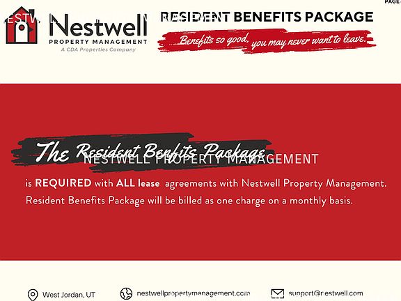This delightful condo offers an inviting floor layout in a prime location! Just a short stroll to Viewmont High School, near the South Davis Recreation Center and shopping, with easy access to I-15. Schedule your Showing Appt. ONLINE NOW! Showing times don't work? AVAILABLE DATE: 05/10/2025 LEASE LENGTH: 12 Months OCCUPANCY RULE: No More than 3 unrelated adult occupants TYPE: Multiplex SQUARE FEET: 1000/1000 PARKING: Rear End of Unit FENCED YARD: No - 2 Bedrooms - 1.5 Bathrooms - Staggered Cabinets - Dishwasher - Stove - Refrigerator - Living Room - And more... TENANT CHARGES: - Resident to sign/pay for gas & electricity - Resident to pay $95.00 CAM Fee per month (includes water, sewer, garbage and grounds) - Resident Benefits Package (RBP) = $24.95 per month *For information on this service - Property Damage Liability Waiver For Residents (PDLW) = $15.95 per month.**For - Security Deposit = Same as rent depending on application score (fully refundable) - Application Fee = $40.00 per applicant 18 and older - Lease Initiation Fee = $150.00 after approval and upon signing - Pet fees as listed (if applicable) - If the mailbox is a community box that requires a key, it is owned by the Postal Service. A small fee may be required to get mailbox keys upon move-in. YARD CARE: Maintenance-Free Community! PETS: - $270.00 per pet security deposit ($135.00 refundable) & $55.00 pet rent per pet. - You will be required to fill out an animal profile and will be provided the link after you have submitted your application and paid the fee. - No resident or residents at any one premises shall at any one time own, harbor, or license more than ONE total animals in any combination - ONE PET will be considered if they meet our pet guidelines. The pet application fee is $30 for the first pet, $30 for each additional pet, and $0 for assistance animal accommodation requests. - For puppies & ; kittens less than 12 months old, there is a non-refundable fee of $100 and a monthly charge of $10/month until the pet reaches 12 months of age in addition to the regular fees. NO Smoking or Vaping is permitted in or on the property. SHOWING INSTRUCTIONS: TO APPLY: - $40.00 application fee per adult to be paid at the time of application. - All applicants will be required to fill out an animal profile even if you do not have a pet. The link will be provided after you have submitted your application and paid the fee. - We process all applications, and the first application that completes all the paperwork requirements will be processed first. PROPERTY MANAGER: CDA/Nestwell Property Mgmt. 8813 S Redwood Road #D1 West Jordan, UT 84088 * All information is deemed reliable but not guaranteed and is subject to change. TENANT CHARGES: - Resident to sign/pay for gas & electricity - Resident to pay $95.00 CAM Fee per month (includes water, sewer, garbage and grounds) - Resident Benefits Package (RBP) = $24.95 per month *For information on this service - Property Damage Liability Waiver For Residents (PDLW) = $15.95 per month.**For - Security Deposit = Same as rent depending on application score (fully refundable) - Application Fee = $40.00 per applicant 18 and older - Lease Initiation Fee = $150.00 after approval and upon signing - Pet fees as listed (if applicable) - If the mailbox is a community box that requires a key, it is owned by the Postal Service. A small fee may be required to get mailbox keys upon move-in. YARD CARE: Maintenance-Free Community! PETS: - $270.00 per pet security deposit ($135.00 refundable) & $55.00 pet rent per pet. - You will be required to fill out an animal profile and will be provided the link after you have submitted your application and paid the fee. - No resident or residents at any one premises shall at any one time own, harbor, or license more than ONE total animals in any combination - ONE PET will be considered if they meet our pet guidelines. - For puppies & kittens less than 12 months old, there is a non-refundable fee of $100 and a monthly charge of $10/month until the pet reaches 12 months of age in addition to the regular fees. NO Smoking or Vaping is permitted in or on the property. SHOWING INSTRUCTIONS: TO APPLY: - $40.00 application fee per adult to be paid at the time of application. - All applicants will be required to fill out an animal profile even if you do not have a pet. The link will be provided after you have submitted your application and paid the fee. - We process all applications, and the first application that completes all the paperwork requirements will be processed first. PROPERTY MANAGER: CDA/Nestwell Property Mgmt. 8813 S Redwood Road #D1 West Jordan, UT 84088 * All information is deemed reliable but not guaranteed and is subject to change.
