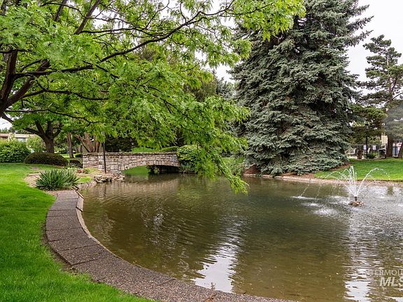 Beautiful waterfront view on this nicely updated ground floor unit! Very relaxing and simplistic lifestyle with an open family room, new fireplace and large sliding glass doors that overlooks the pond and ducks just steps from your backdoor. Easy access to locking storage units inside the covered carport parking right outside your front door. Plenty of guest parking too! Clubhouse and community pool are easily accessed via pathways and perfectly manicured landscaping. This central location is close to the mall, restaurants and downtown Boise.