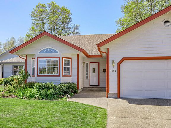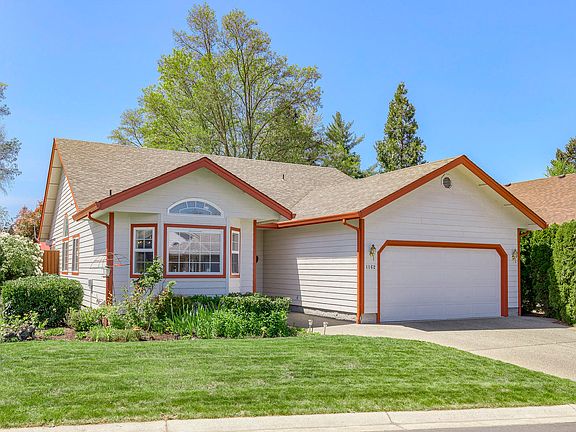 Beautiful home in the River's Edge Community. What a charmer this home is and features a 2 bedroom, 2 bath with 1530sf; you will love the wonderful sun room with tile floor. Sunny and bright kitchen with bay window, granite counters, snack bar and an abundance of cabinets. Great room with vaulted ceiling, wood floors and windows to let the sunshine in. Master suite has walk-in closet with built-ins, step in shower, plant shelves and slider to the sunroom. Guest room has a murphy bed that is perfect for your visitors and also be a great home office Laundry room with cabinets. An attached two car garage with cabinets. You will have your own private getaway as you step into the amazing backyard with beautiful mature landscaping, raised beds and a gazebo. HOA covers water/sewer, common areas and front yard landscaping. Access to the famous Rogue River. RV parking when available. Perfect location and proximity to park, town and hospital.