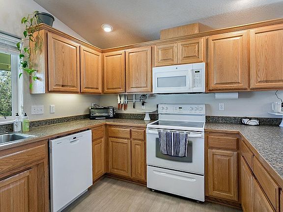 Fall in love with this single level cutie on a quiet cul-de-sac in Grants Pass! From the welcoming front porch to the open living area, this 3 bdrm, 2 ba home features new laminate flooring, new light fixtures, vaulted ceiling, forced air gas heat & A/C, and ceiling fans for those warm summer days. The spacious kitchen offers lots of cabinets, pantry and eat-in breakfast bar. The master suite has a vaulted ceiling and walk-in closet, and the master bath offers double sinks and walk-in shower. The fenced backyard has a nice sized deck, garden, and low maintenance landscape so you can spend your days/nights chillaxing. Conveniently located just blocks from Tussing Park and the Rogue River walking bridge leading to the All Sports Park. Also, super close to the hospital, shopping, & Dutch Bros coffee stand! District 7 Schools too!