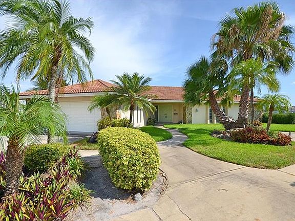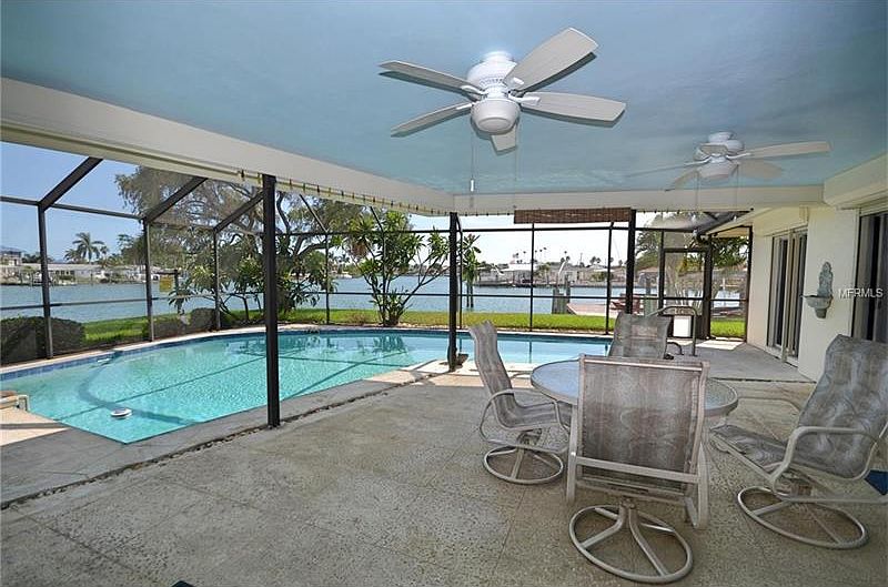 An irreplaceable location, this home is located on an over-sized corner waterfront lot with approximately 230 feet of seawall that offers spectacular views and extensive water frontage for your home and your yacht. The wet slip has been configured to fit up to a 60 foot yacht, is located in a No Wake area and leaves plenty of open views for your enjoyment even when your yacht is docked. This is sailboat water and just ten minutes away from the Gulf of Mexico. You have exceptional views east, south and west including the explosion of colors that light the sky as the sun slips into the west. Located on the Isle of Capri in Treasure Island, FL, this home was designed around Florida living. There are two sets of sliding glass doors that pocket open so that the large screen enclosed lanai and pool area become a part of your living area. The white sandy beaches of Treasure Island are just a bike ride away. Sit on your lanai and watch your neighbors as they sail by. This block home features 4 bedrooms, 2.5 baths with a split bedroom floor plan. The home has been well kept but would enjoy being updated. The half bath was originally a full bath and the plumbing is still there to convert back to a 3 bath home. This is an unusually large waterfront lot, almost a third of an acre. There is an inside laundry room with an adjacent 6 x 9 foot room that could be used as a sewing/ craft room or an extra closet. The home is being sold "as is".
