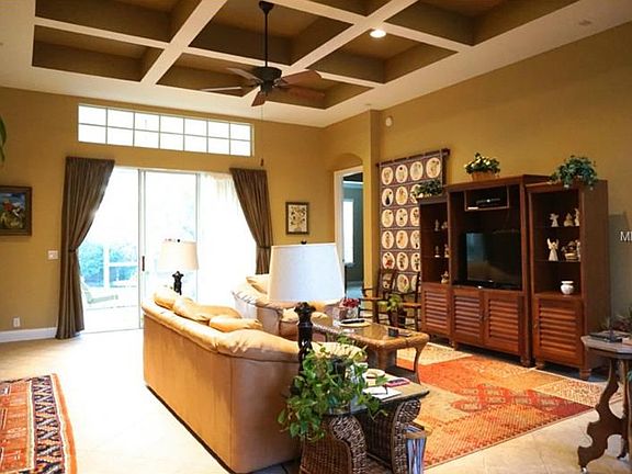 NEW PRICE! Charming and spacious describes this Summerlin model home, built by Morrison Homes in 2003. The open living and dining rooms have beautiful Italian tile floors and crown moulding.The adjoining study/den also has crown moulding, wood floors and a tray ceiling. The master bedroom has crown moulding, double closets and paves the way to the master bath with a garden tub and large glass-surround shower with decorative pebble mosaic tile and glazed maple cabinets. The kitchen is well-appointed with glazed maple cabinets, custom beadboard accents, granite countertops, a decorative tile backsplash over the stove top, stainless steel appliances, including a double oven. The two secondary bedrooms are split with a separate bath to service each. The laundry room has an abundance of cabinets and a sink. The covered lanai off both the family room and master bedroom is screened and the lushly landscaped backyard provides plenty of room for a future pool.
