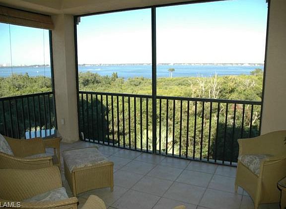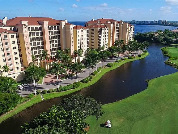 H.13283 - A life of luxury awaits you at this stunning waterfront condo nestled in Palmas Del Sol in Gulf Harbour Ycht & CC. where you are just minutes to the sugar sand beaches of Ft. Myers,Sanibel/Captiva Islands.Enter this 5th floor home to discover style,sophistication & sweeping waterfront & golf course views.The spacious Alhambra floorplan boasts 2555 in sq.ft,lives like a single family home in the sky!This 2+den,(den is used as a 3rd bd)w/upgrades including volume & tray ceilings,crown molding,custom wetbar w/wine cooler,tile floors,hurricane impact glass.New no see-um screens,AUTO HURRICANE SCREENS,plantation shutters.Your kitchen offers beautiful cabinetry w/underlighting,granite,tumbled marble backsplash,newer refrid.,island.Escape to your lanai w/panoramic views of the River & spectacular sunsets!This private retreat is perfect for entertaining family & friends!Oversized M/bedroom offers views of 3rd fairway,abundant space for a seating/relaxing area.Your M/B ensuite bathroom has a roomy walk-in shower,soaking tub,massive closet & dual sinks.Nicely sized 2 b/r & office/3rd b/r.UNDERBUILDING ENCLOSED 2 CAR GARAGE!Comm.pool/spa,clubhouse.CLICK ON VIRTUAL TOUR FOR MORE INFO