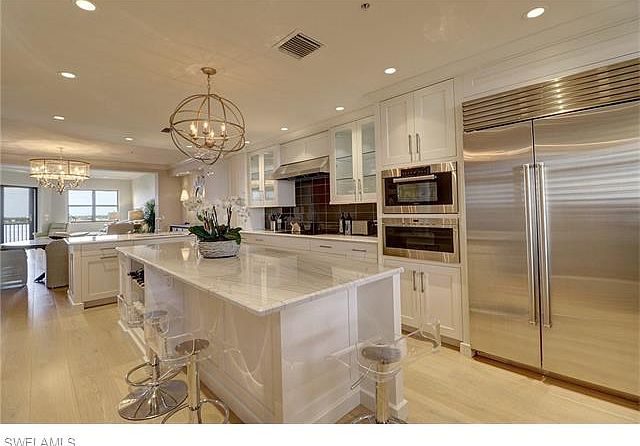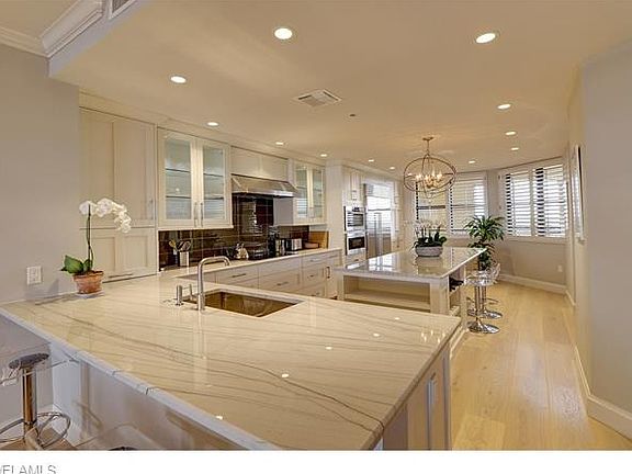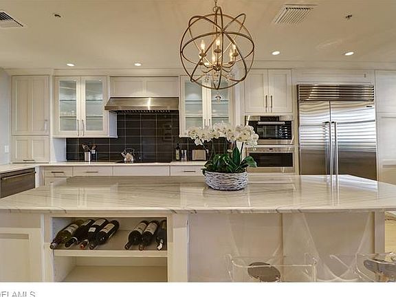 The elegance and truly exquisite taste is easily noticed when you walk through the front doors of this fully remodeled condo. Located within minutes of Ft. Myers beach and Sanibel Island and an easy 20 min. drive to the International airport and shopping. This transitional condo brings an entirely fresh vision by offering a clean palette of what can be traditional or contemporary. You are welcomed by Lengo Bastone 8" custom European French oak flooring. The open floor plan and kitchen offer functional family style cooking and entertaining with Wolf/Subzero appliances and a large island topped with white Macabus granite. The large master bedroom offers breathtaking views of the intracoastal waterway and access out to the lanai, which extends almost the full width of the condo. Not one corner was left untouched in this professionally designed and renovated condo. Palmas Del Sol residents enjoy a private clubhouse, heated pool/spa and outdoor grill. Owners also have the option of a Gulf Harbour membership